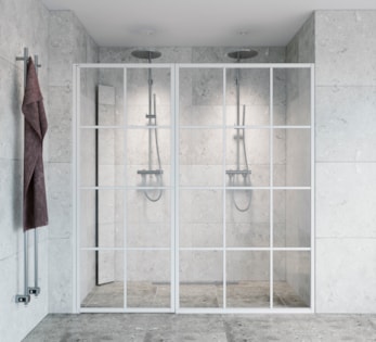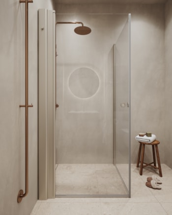 Med dusjvegger rett på flisene får du et åpent og moderne uttrykk. Velg dører som slår inn, ut eller skyves og kombiner med dusjgarnityr, innebygde armaturer og skjulte rør. Rengjøring er enkelt, men husk at dusjhjørner kan gi høyere fuktbelastning.